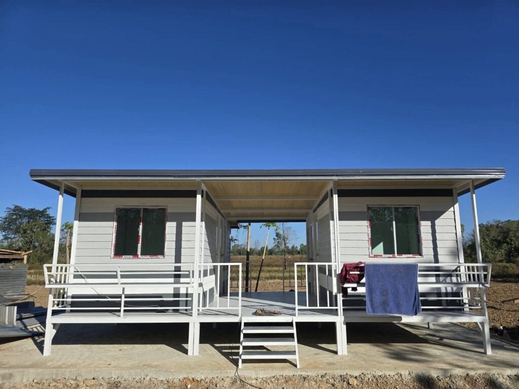 ช่างไทย ที่คิดเก่ง ทำเก่งก็มีเยอะ นะครับผมขอยกตัวอย่างผลงาน ที่ผลิตทำอาคารออกมาในระบบอุตสาหกรรม ออกมาในราคาน่าสนใจมาก บ้านน๊อคดาวส์ โครงเหล็ก( รูปที่ 2 ) ราคาตารางเมตรละ 5,000 บาท