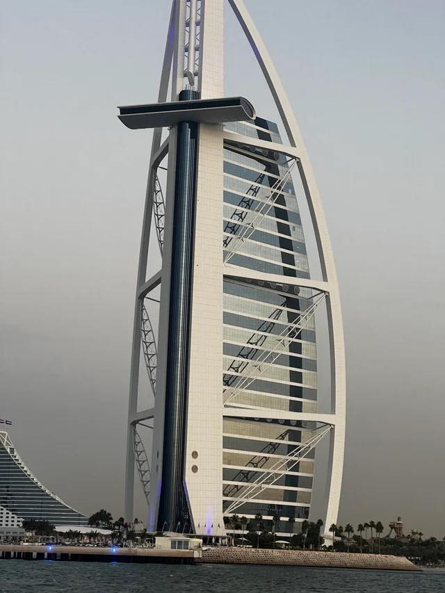ตั้งอยู่ริมทะเล ในดูไบ มีรูปร่างที่เห็นกันทั่วไป ในมุมด้านข้างเป็นรูปของเรือใบ